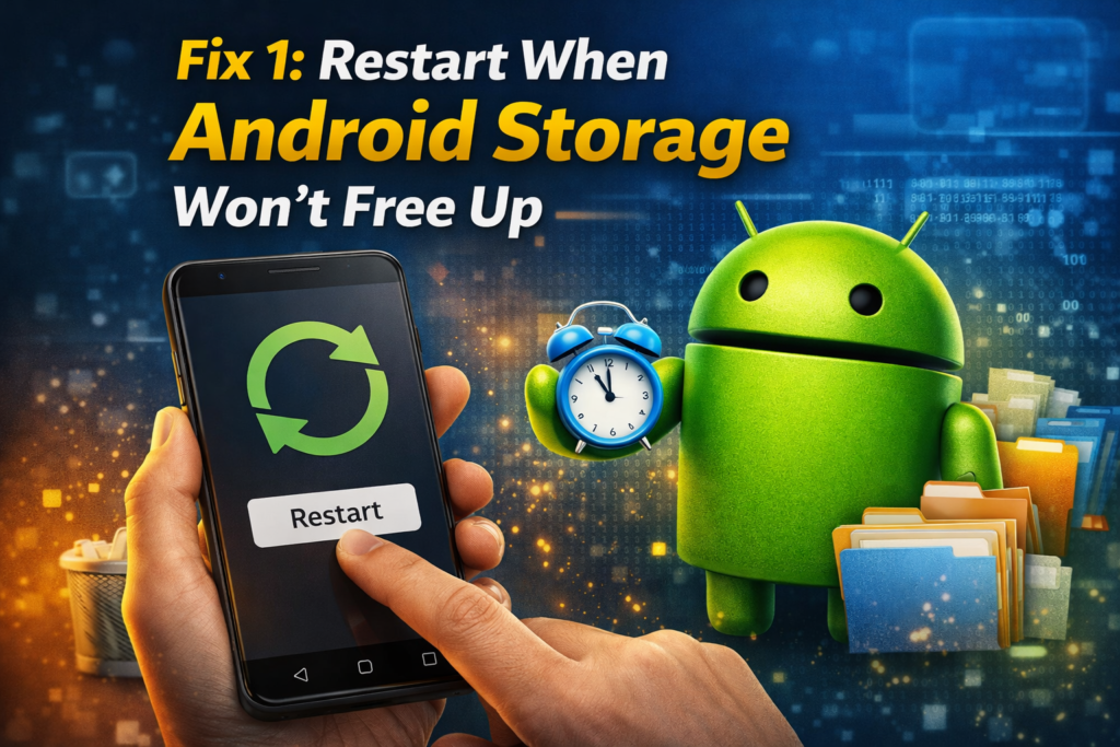 To begin with, restarting your phone can solve temporary glitches. In many situations, your device simply needs a refresh to update storage correctly.